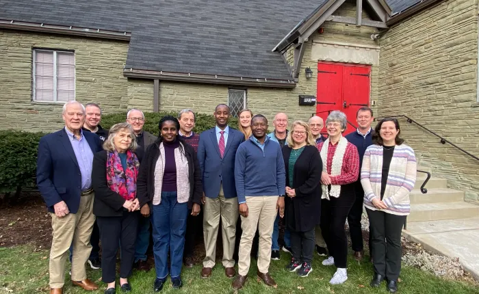 Prof. Mushengezi (Forefront middle) poses with UCU Partners Board members in Umbridge, Pennsylvania.