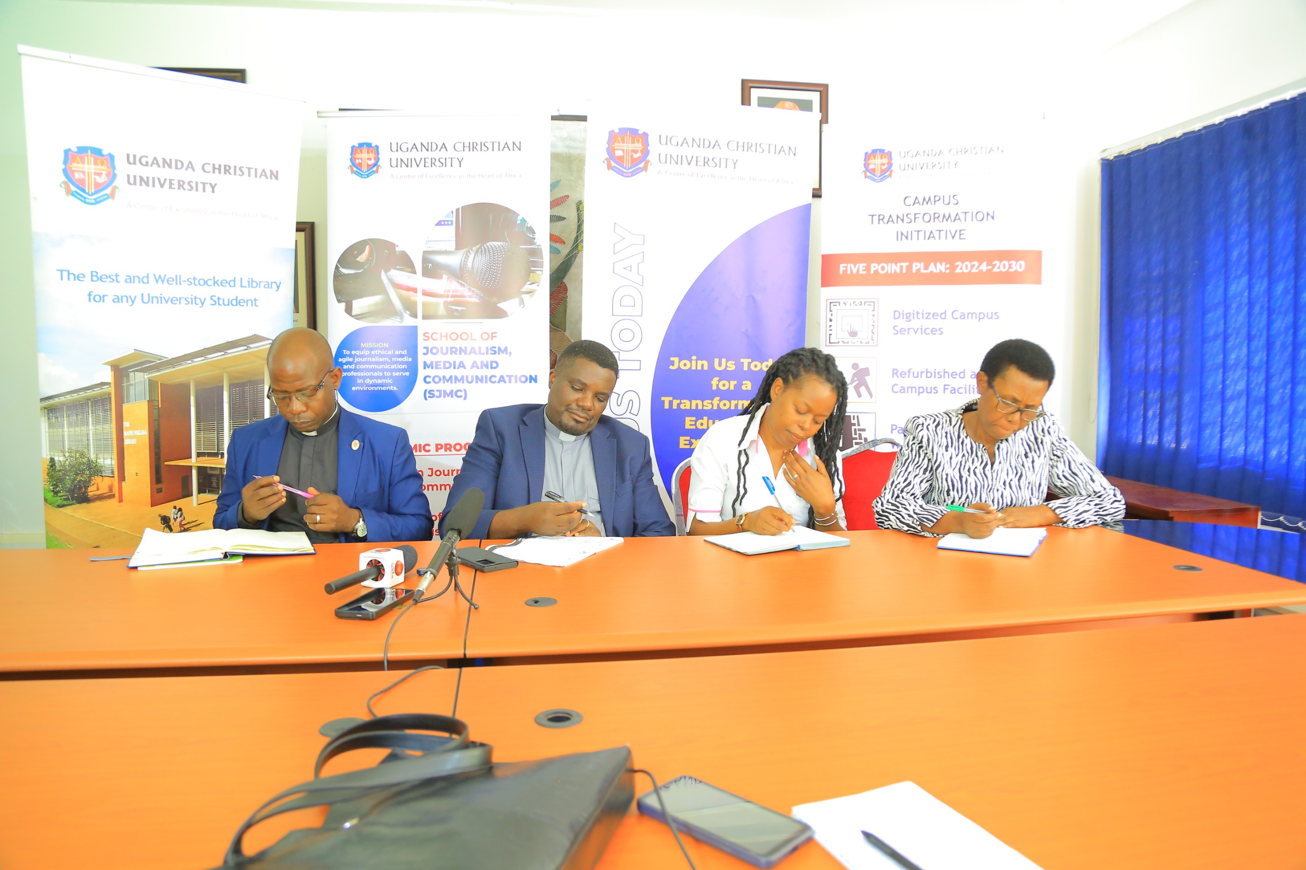 Prof Kitayimbwa explaining to the press at UCU main campus