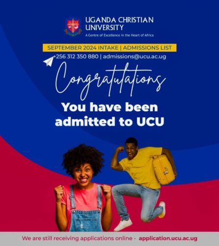 of admitted students to the Advent (September) Intake 2024 of Uganda Christian University (UCU). This list is issued regularly toward the end of an application window during the year. The list indicates a student’s name, application number, and the academic programme they were admitted to.